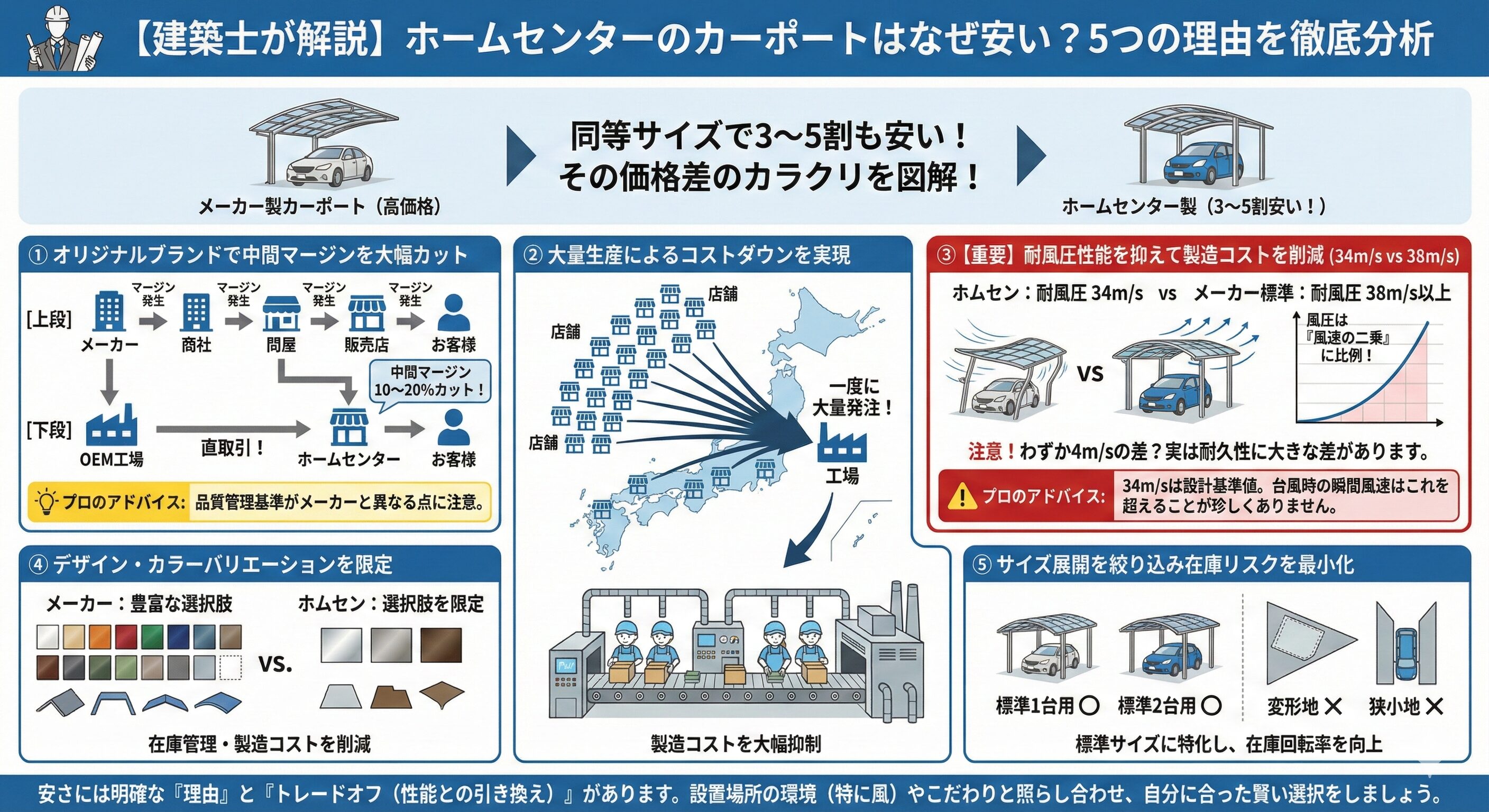 【建築士が解説】ホームセンターのカーポートはなぜ安いのか?5つの理由を徹底分析
