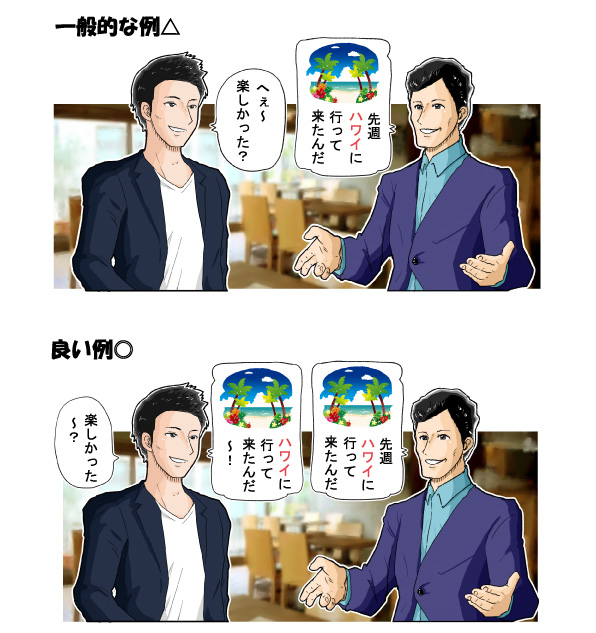 なのでハワイという単語を繰り返してあげると会話が凄く自然に繋がっていきます。