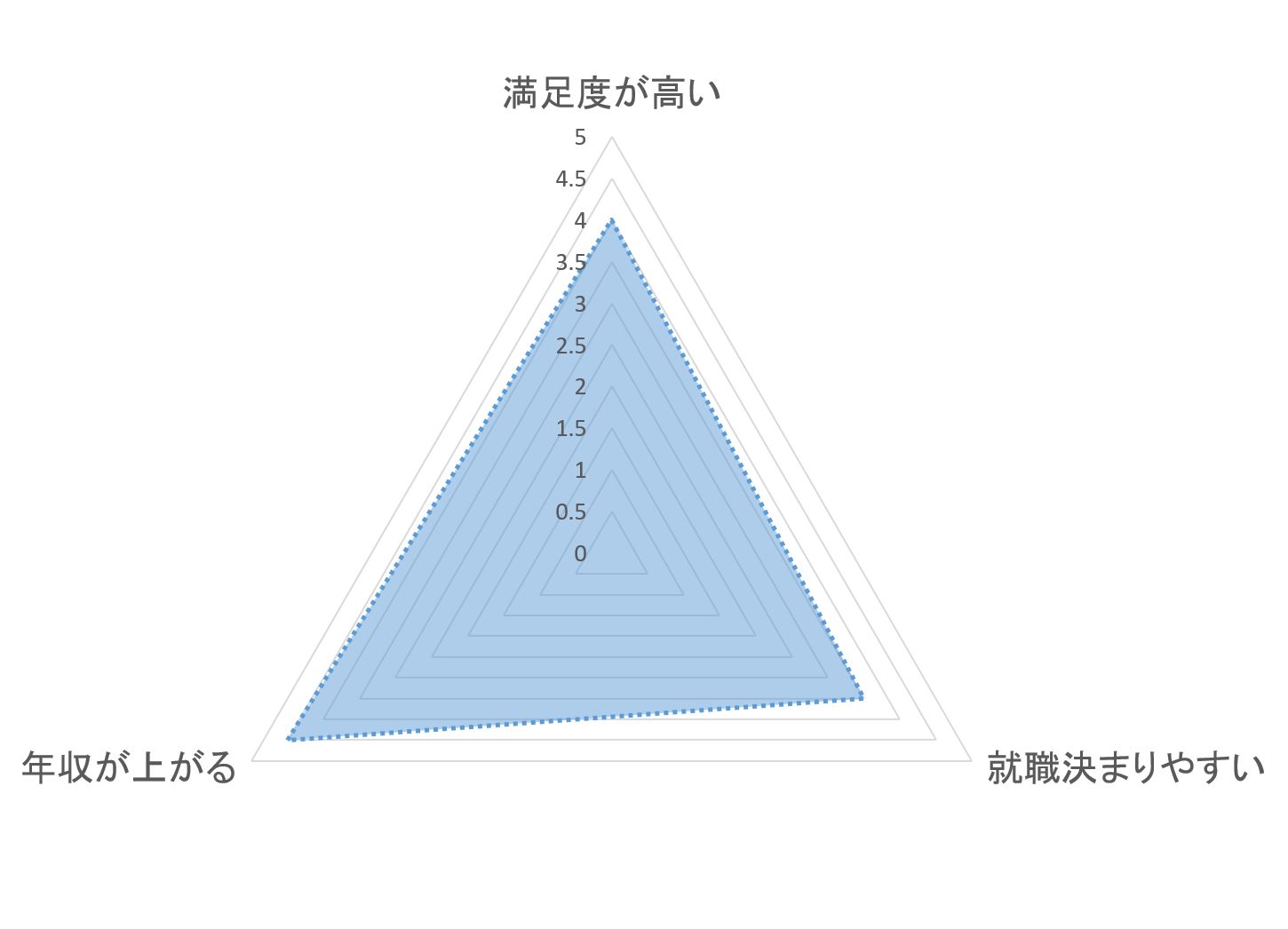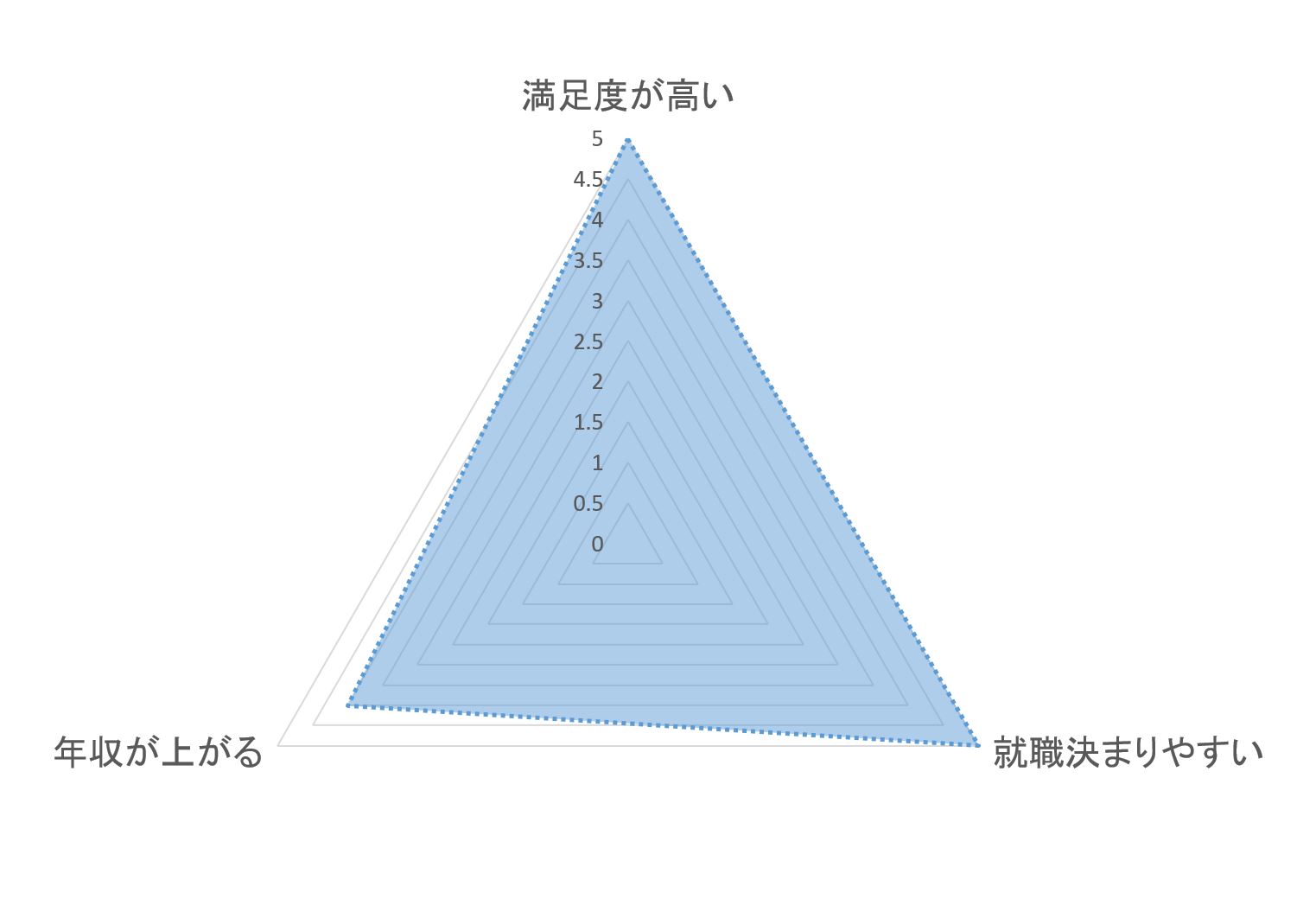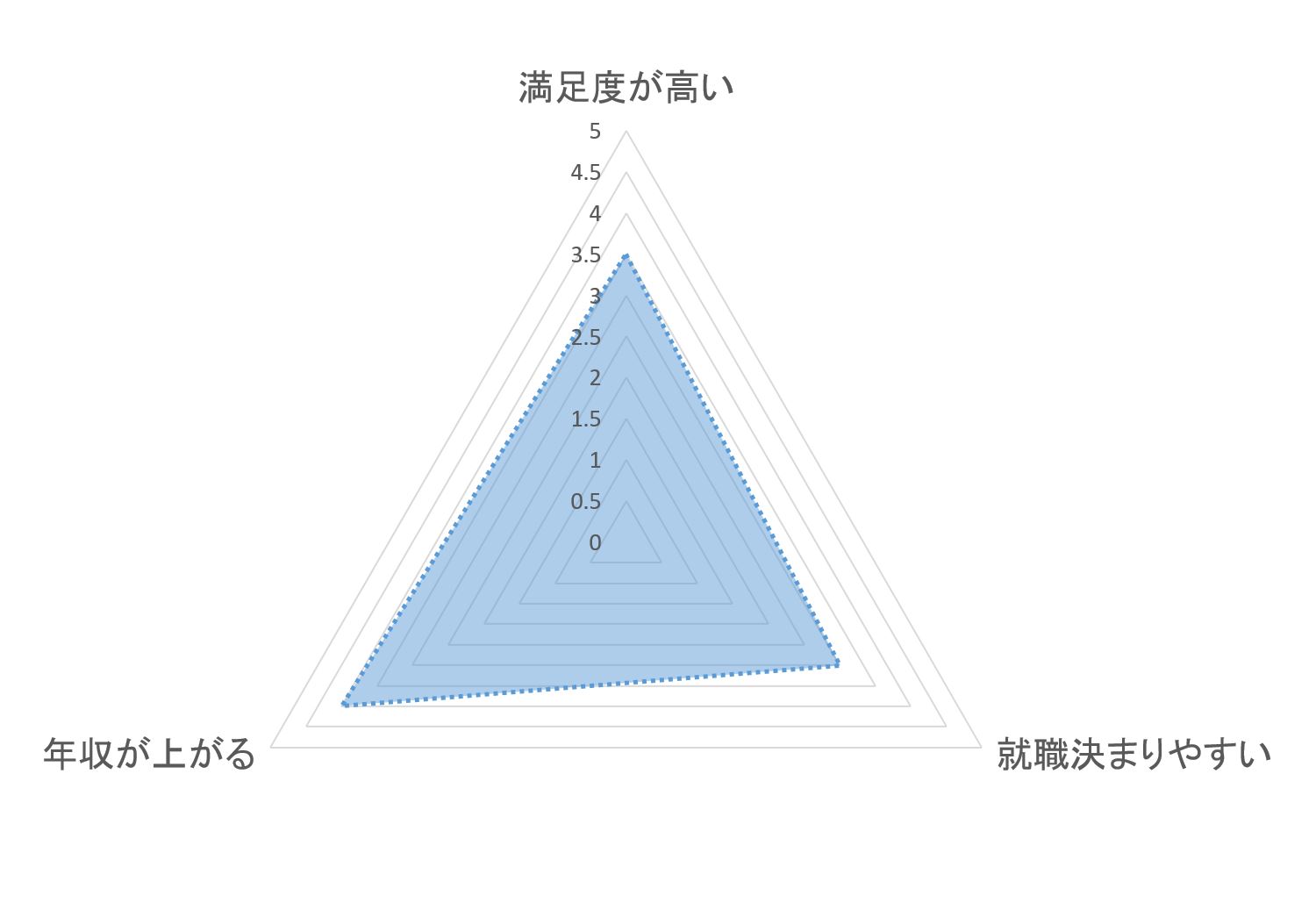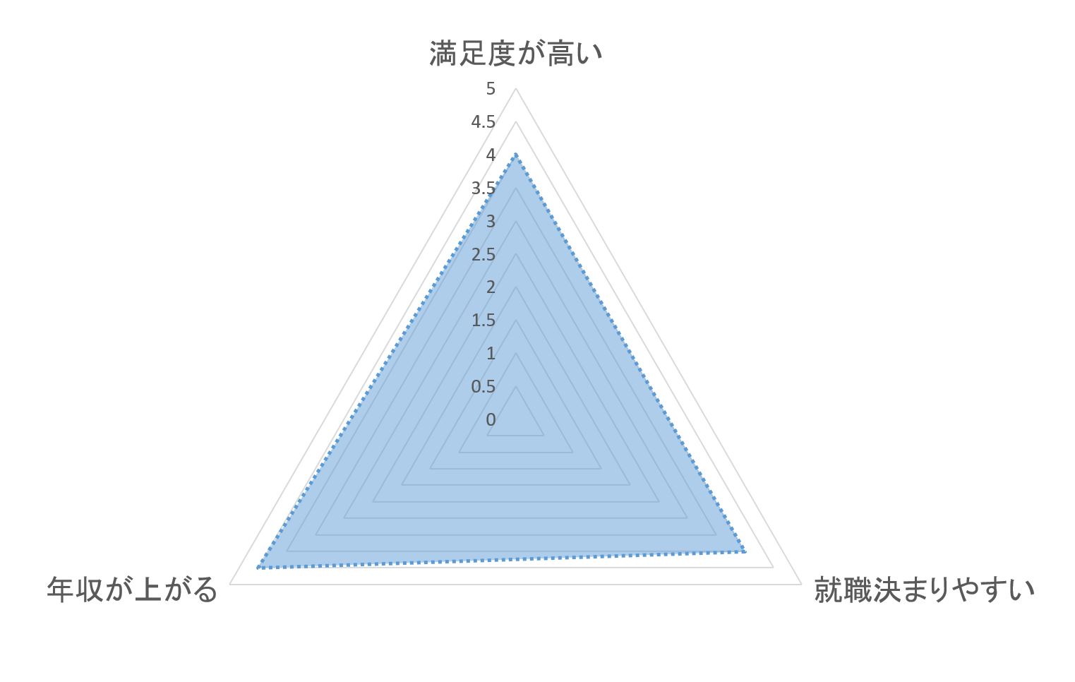 | 満足度 | 就職の決まりやすさ | 年収UP |