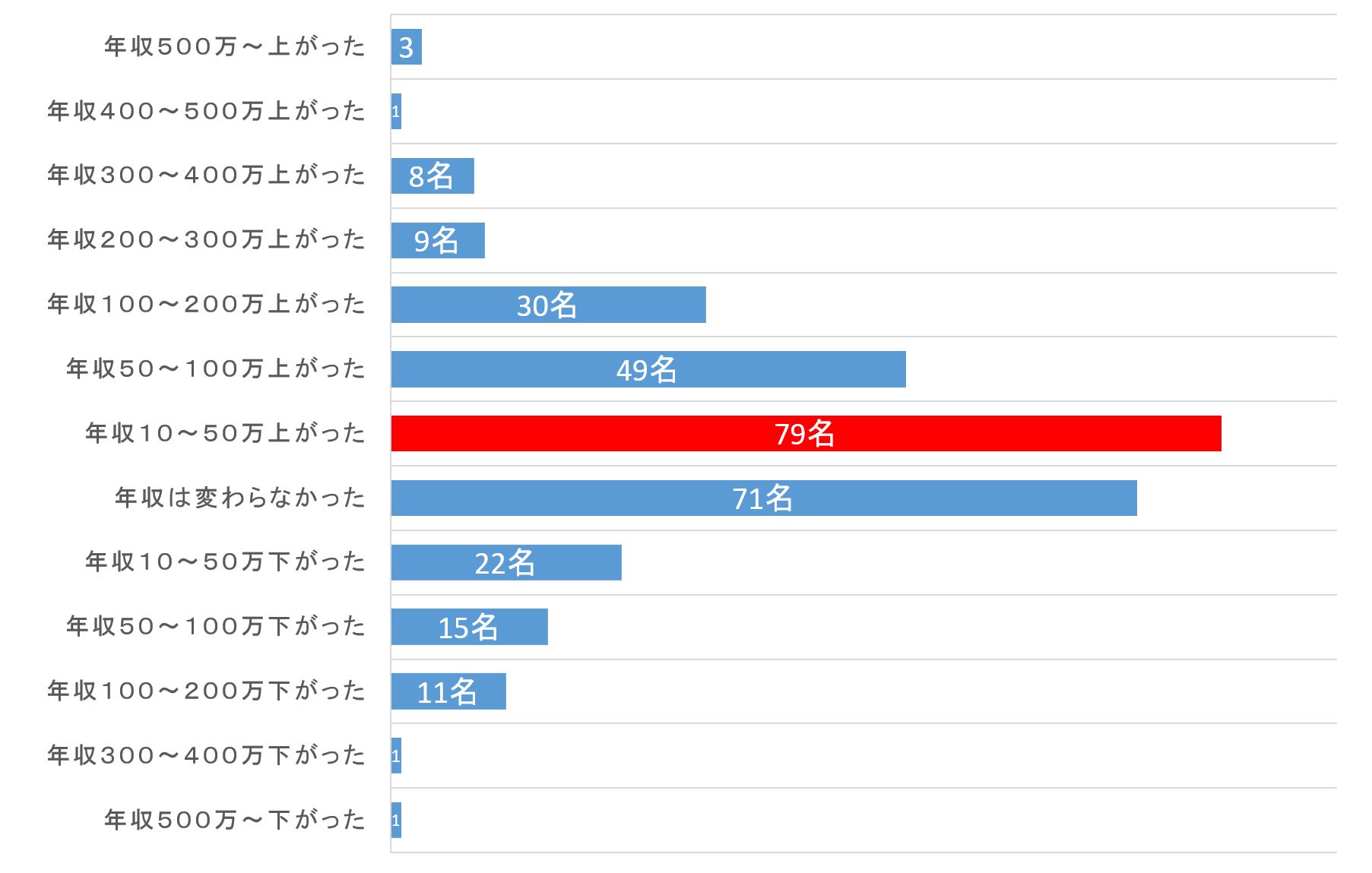 転職してどれくらい年収が変わったのか調べたところ、以下のような結果に。