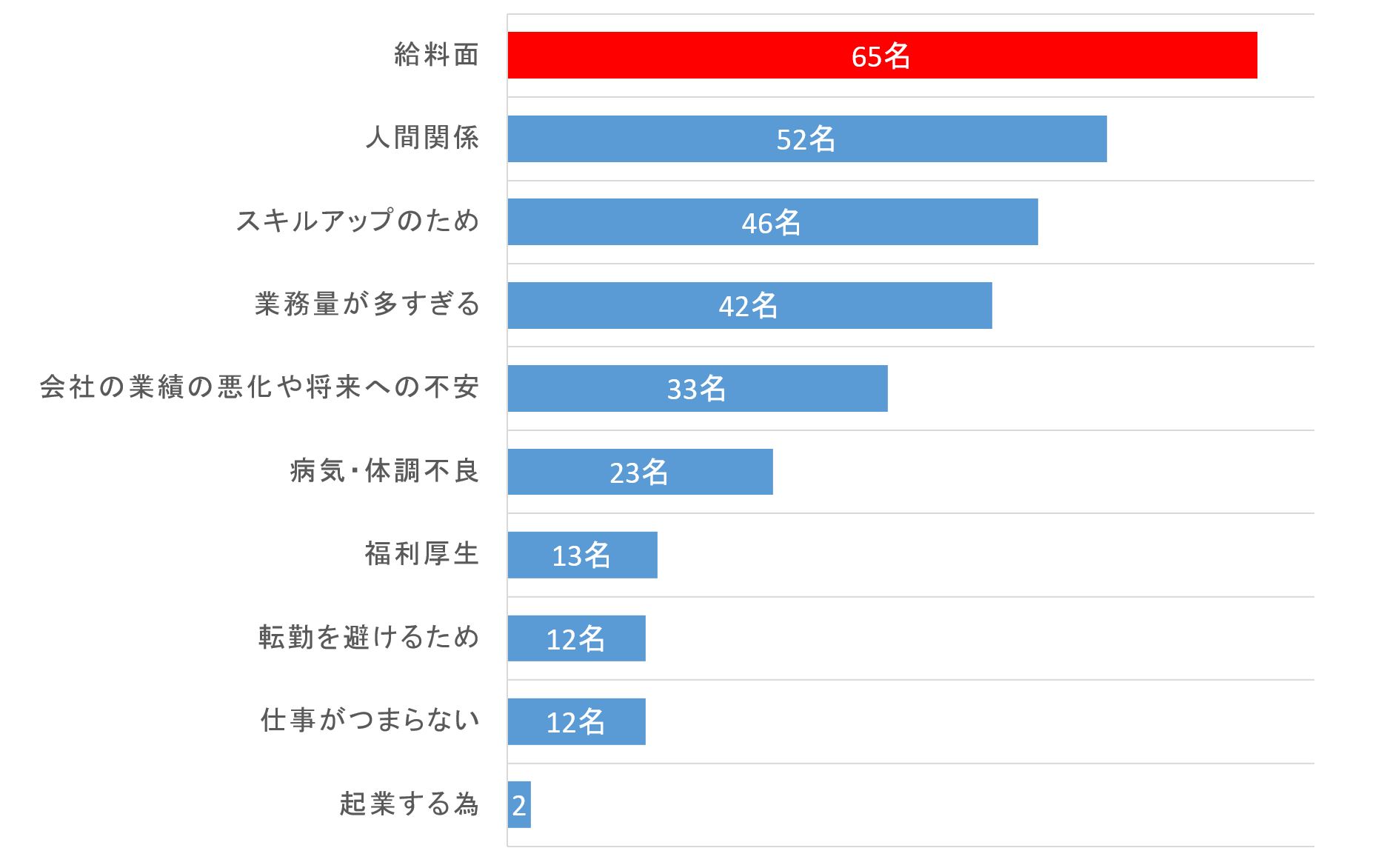 転職理由の1位は給料面でした。前の職場で年収に不満を持っていた方が多かったです。
