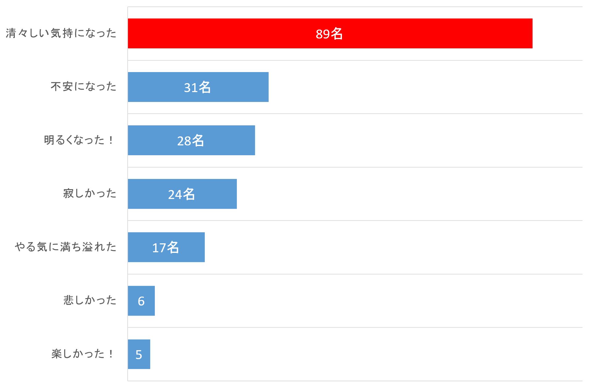 200人の中で最も多かった退職後の気持ちの変化は「清々しい気持になった」という声。他にも前向きな声としては「明るくなった!」という人も多かったです。