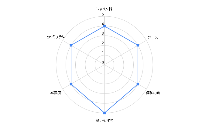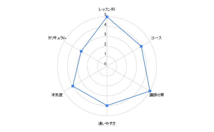 レッスンの予約の利便性 ★★★★★ ★★★★★ ★★★★☆ ★★★★☆ ★★★★☆ ★★★☆☆ ★★★☆☆