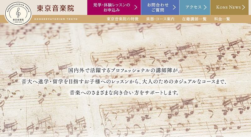 東京音楽院は音大へ進学・留学を目指す目指すお子様へのレッスンから、大人の為のカジュアルなコースまでサポートしてくれる音楽教室です。