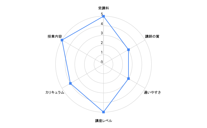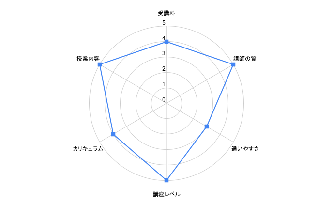 | 講師の質 | ★★★★★ | ★★★★☆ | ★★★★★ | ★★★★★ | ★★★★★ | ★★★★★ | ★★★☆☆ | ★★★★★ | ★★★★★ | ★★★☆☆ | ★★★★☆ | ★★★★★ |