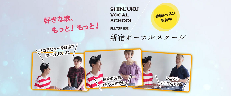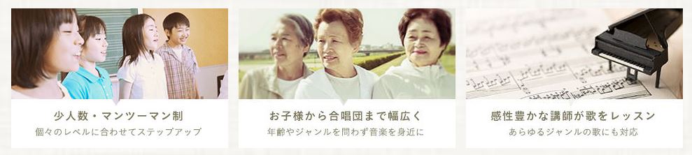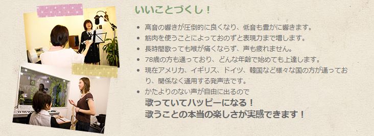 レッスンの質の高さから、テノール歌手の秋川雅史さん、音楽プロデューサーのSinさんなど著名な方々の推薦もある教室ですので、信頼できます。