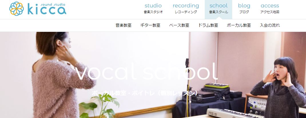kiccaは、歌の技術はもちろん、体の使い方やトレーニング、発声・発音、話し方なども基礎から学べる教室です。