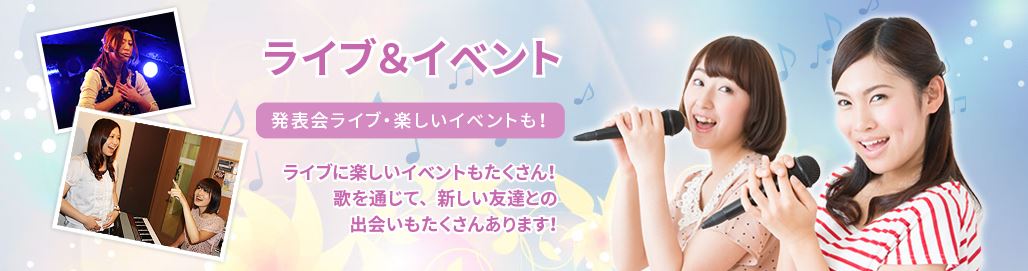 クラスによっては、呼吸法から身体の使い方まで丁寧に指導してもらうことができますので、音楽が初めてという方も、歌がとにかく苦手という方でも安心です。