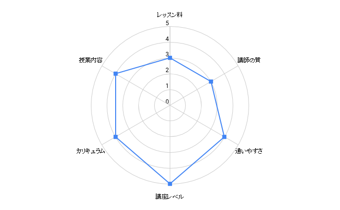 | レッスン料(1回) | 5,400 | 3,500 | 3,700 | 12,000 | 1,125 | 1,000 | 2,000 |